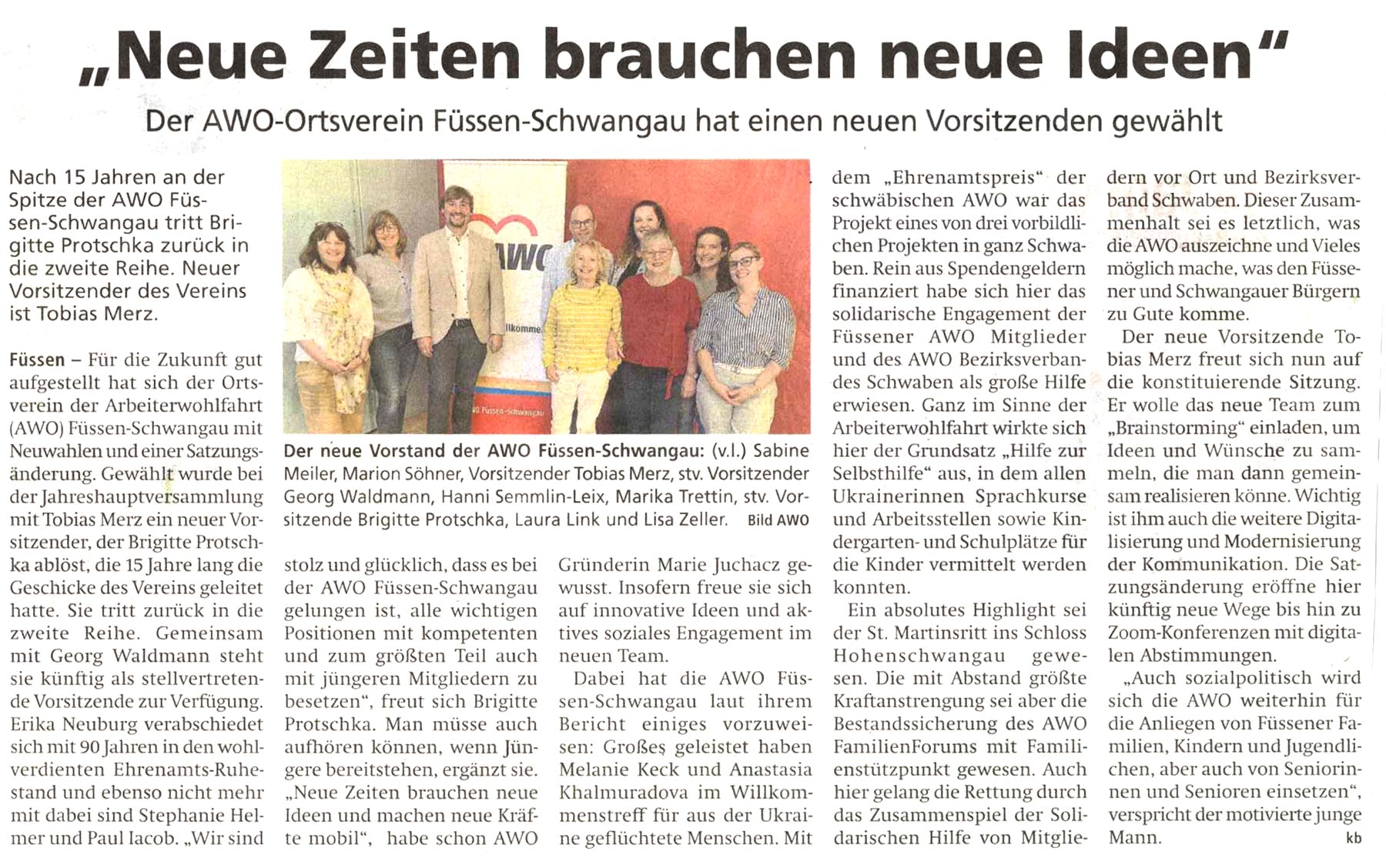 Neue Zeiten brauchen neue Ideen Details Erstellt: Montag, 15. Juli 2024 15:44 Kreisbote Füssen -lokal- 13.07.2024